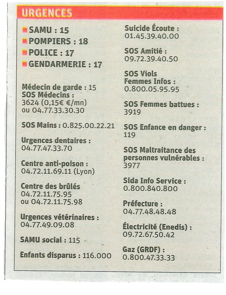 Fichier des Numéros d'URGENCE